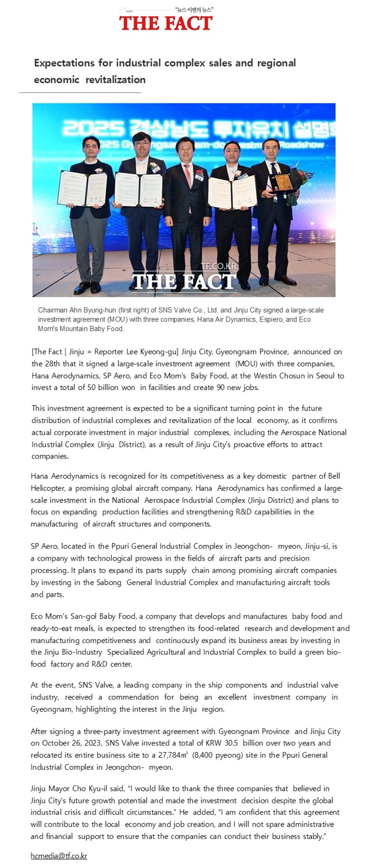 Title Jinju City signed a 50 billion won investment agreement with three companies at a Seoul metropolitan area investment attraction briefing session. Date 2025.10.29 Hit 165